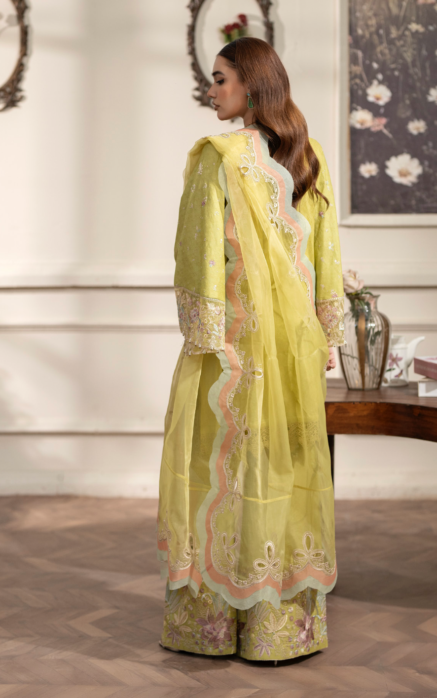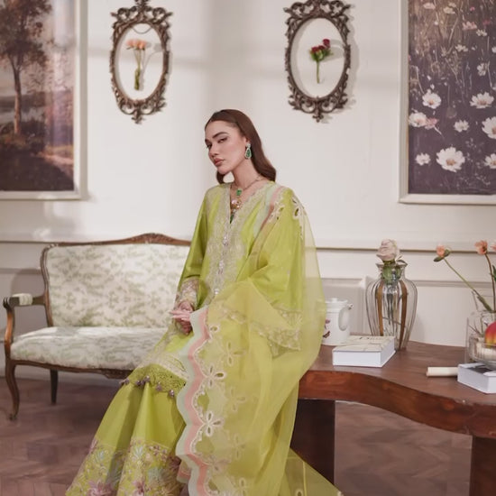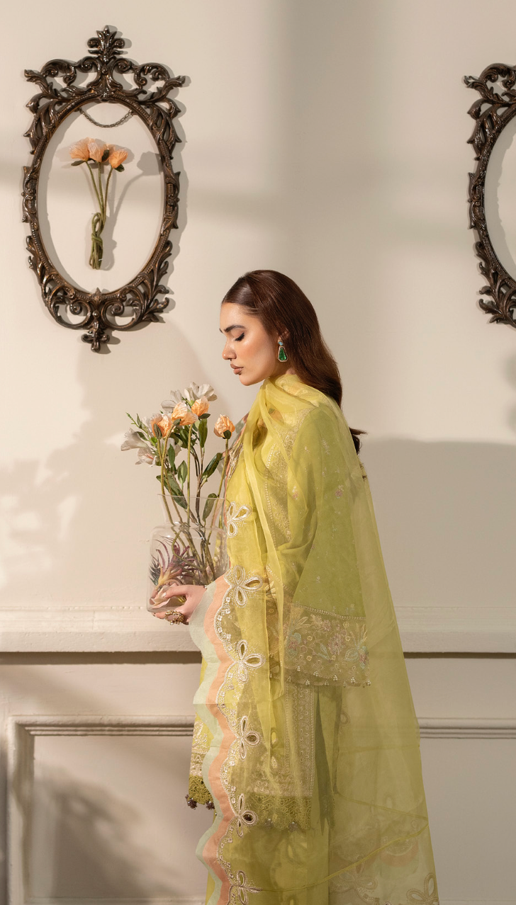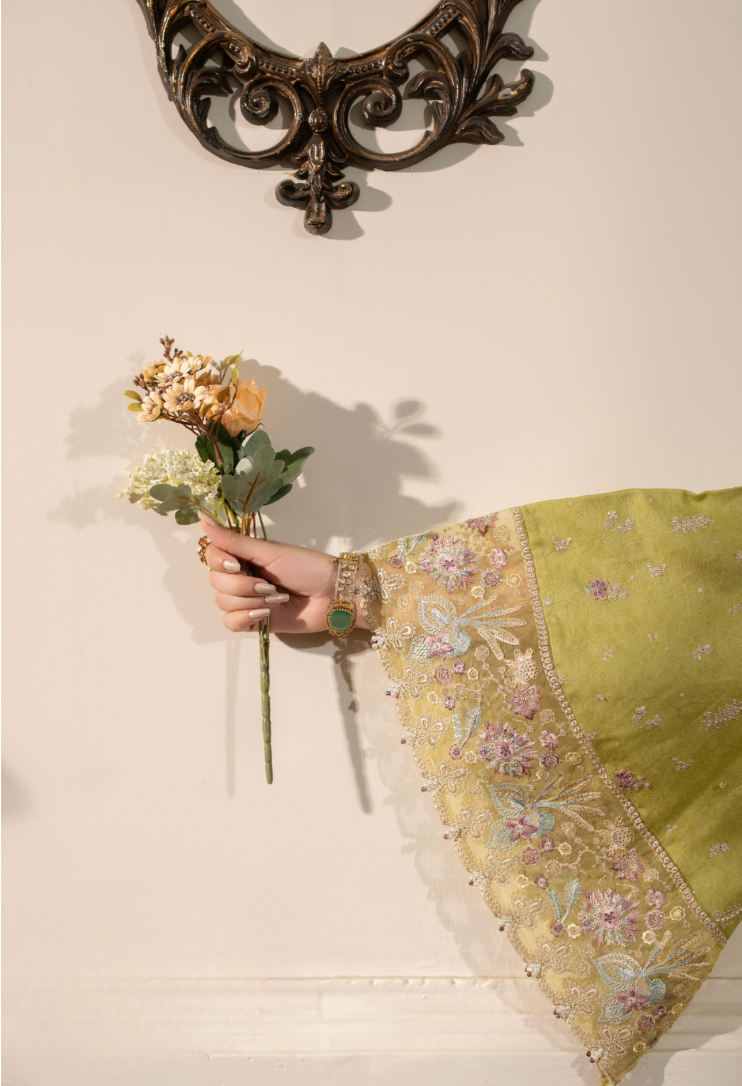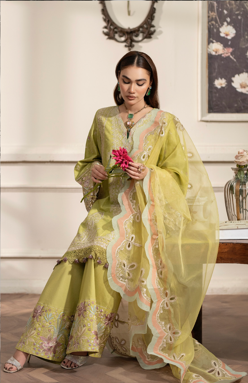 ✨ Meticulously crafted with intricate embroidery, pearls, and applique design borders. Paired with a Net dupatta featuring embossed and embroidered borders, and complete the look with our comfortable cotton trousers. Shop now and make a statement!