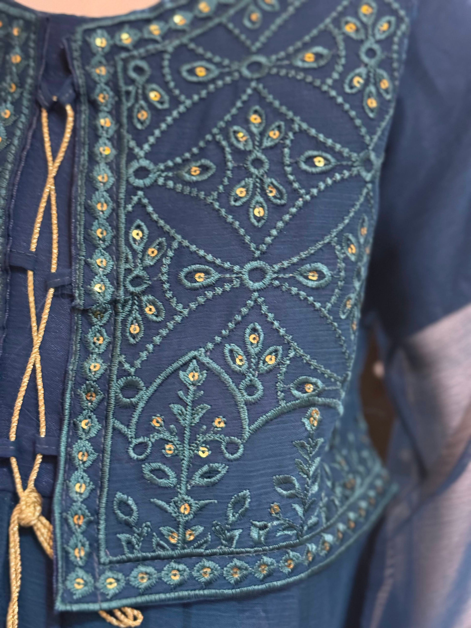 Ink Blue Jacket Chiffon Frock