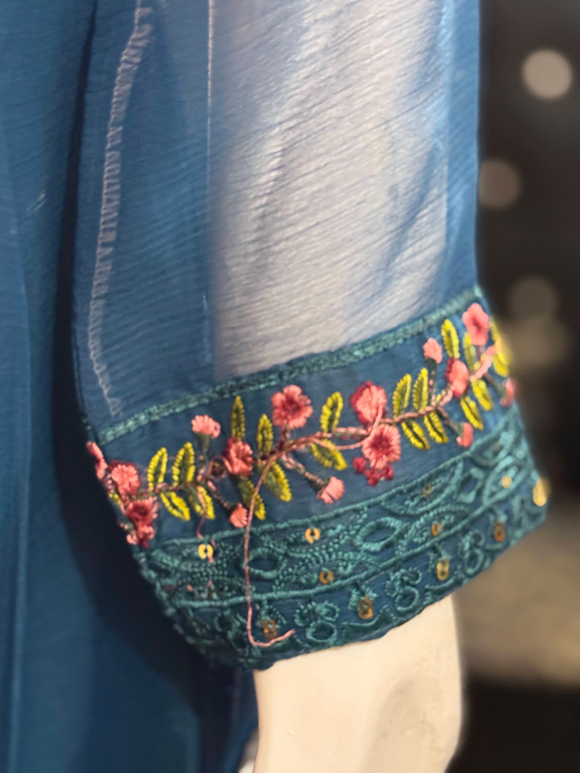 Ink Blue Chiffon Frock + Trousers + Chiffon Dupatta