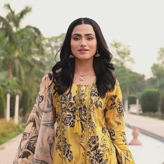 A soft yet statement-worthy piece of Lawn Collection, this 3PC set blends traditional charm with modern grace. The long-length embroidered lawn shirt features refined patchwork that brings a delicate yet impactful vibe. Paired with a flowy flapper trouser in breathable cotton and a diamond chiffon dupatta that adds the right amount of sophistication, this ensemble is your go-to for both everyday elegance and light festive moments.