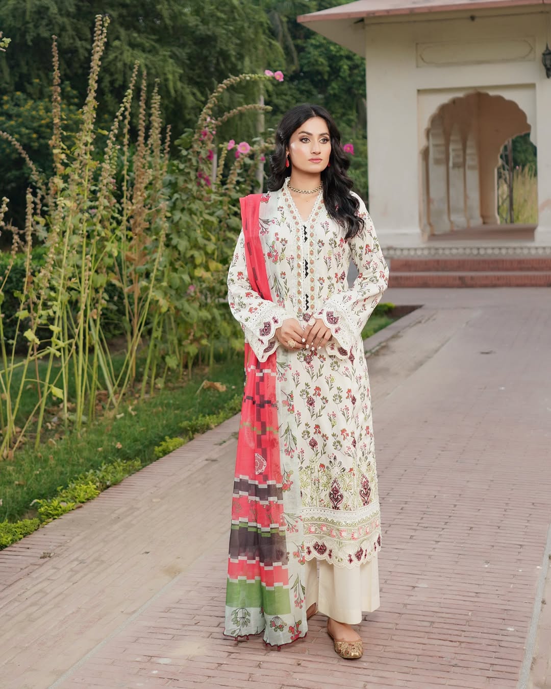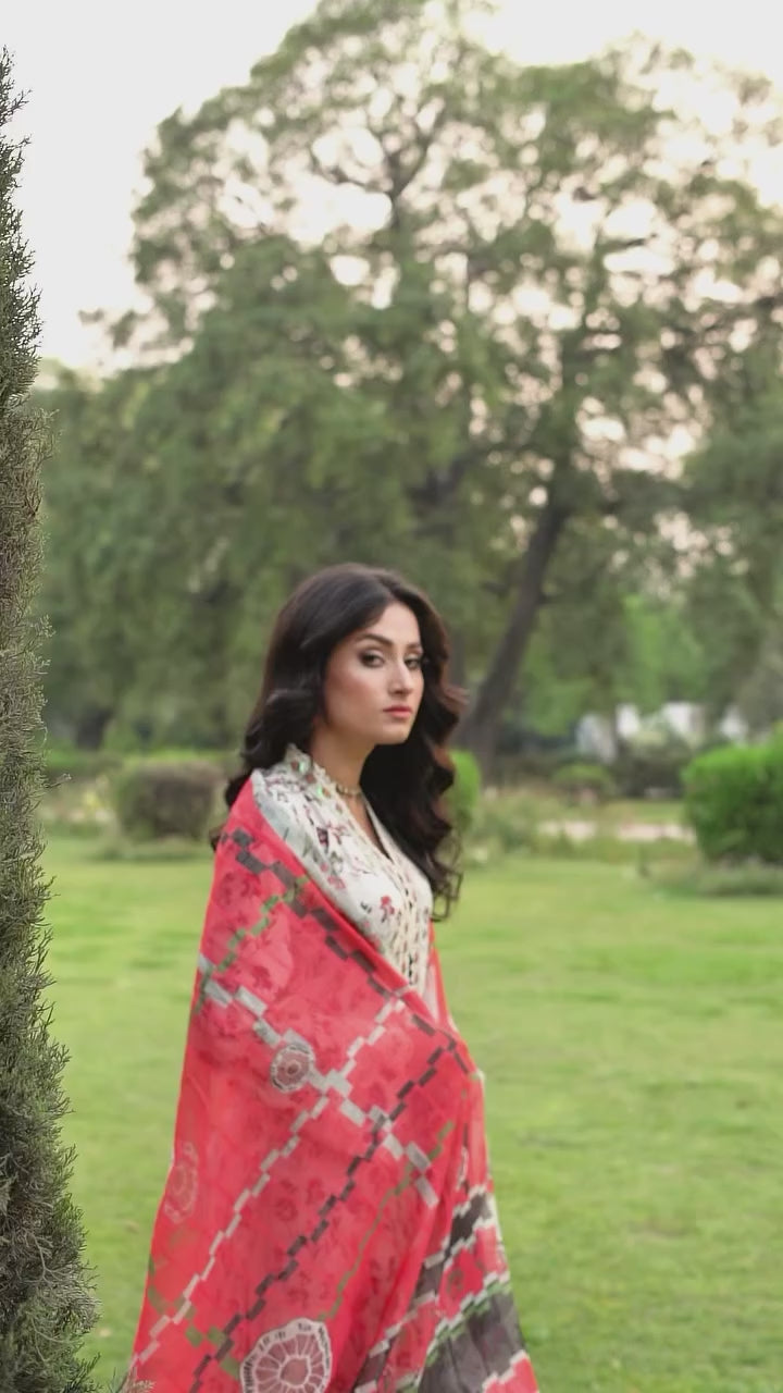 A soft yet statement-worthy piece of Lawn Collection, this 3PC set blends traditional charm with modern grace. The long-length embroidered lawn shirt features refined patchwork that brings a delicate yet impactful vibe. Paired with a flowy flapper trouser in breathable cotton and a diamond chiffon dupatta that adds the right amount of sophistication, this ensemble is your go-to for both everyday elegance and light festive moments.