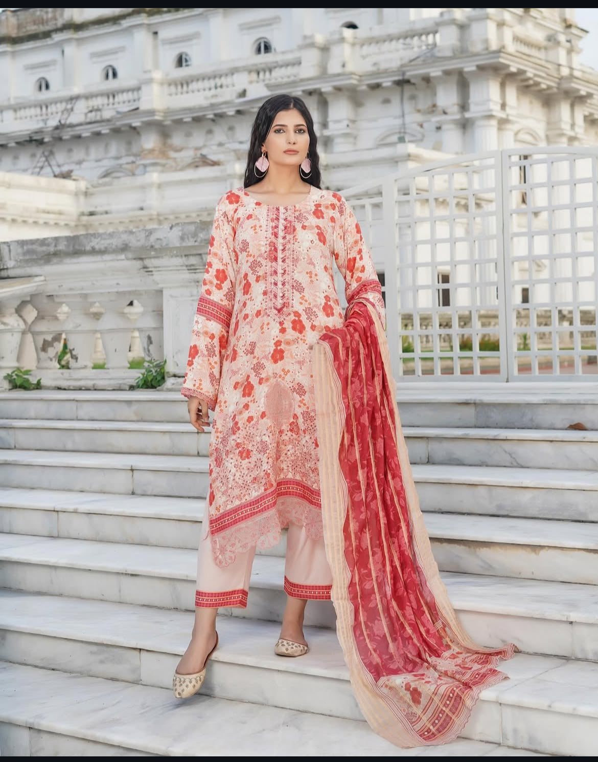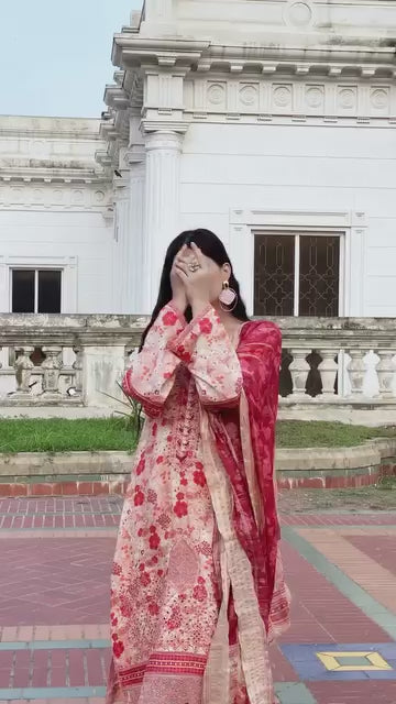 Munira Designers - Peach with Tinted Dupatta