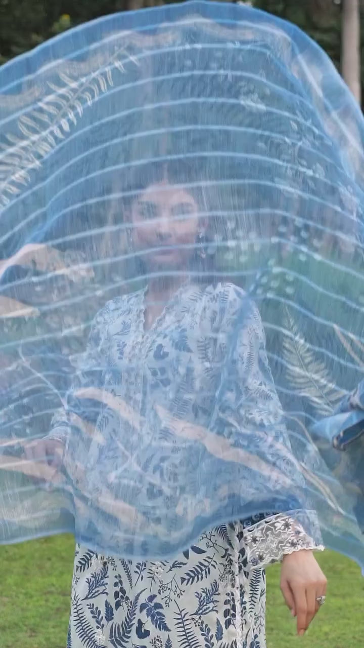 A soft yet statement-worthy piece of Lawn Collection, this 3PC set blends traditional charm with modern grace. The long-length embroidered lawn shirt features refined patchwork that brings a delicate yet impactful vibe. Paired with a flowy flapper trouser in breathable cotton and a diamond chiffon dupatta that adds the right amount of sophistication, this ensemble is your go-to for both everyday elegance and light festive moments.